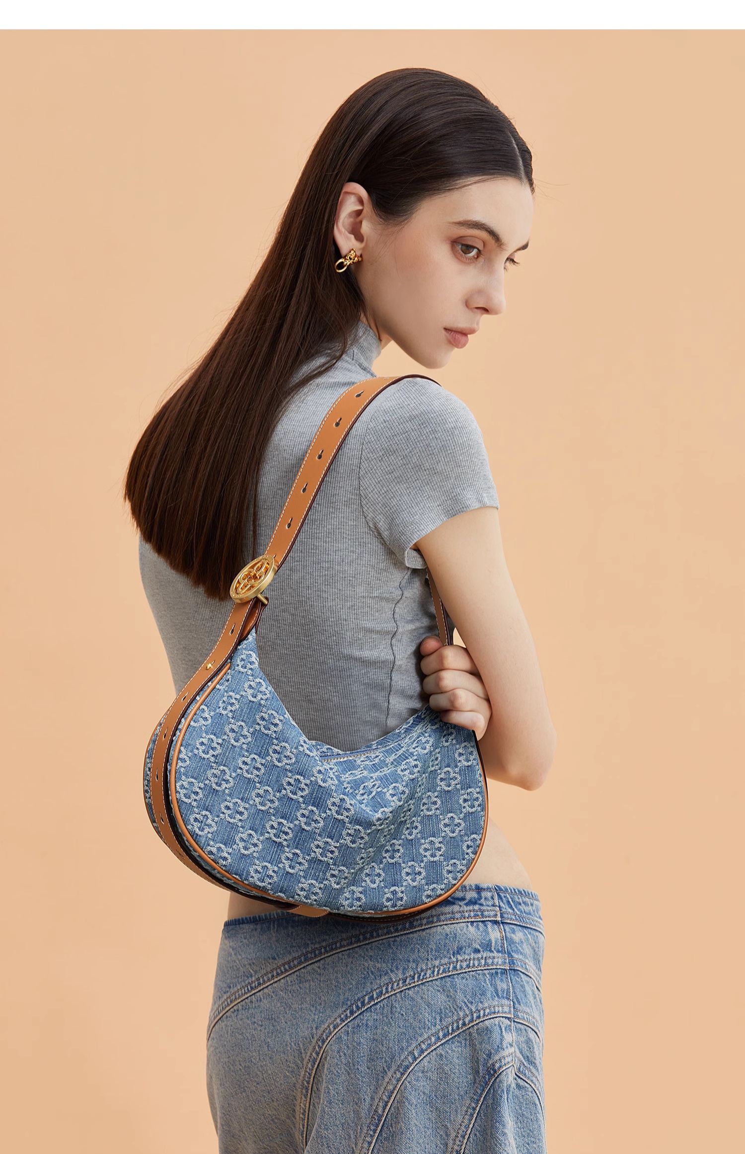 Cowboy Underarm Bag for Women Hobo Handheld Crescent Tooth Bag Shoulder Bag
